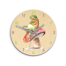 Ceasuri de perete cu motiv de BROAȘTE. Au fost fabricate din placaj de mesteacăn cu o imprimare frumoasă. Au un cadran clar, care vă permite să citiți ușor ora. Acest lucru este deosebit de important atunci când copilul dumneavoastră învață să folosească ceasul.