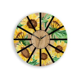 Ceasuri de perete din stejar cu motiv de floarea-soarelui. Are un cadran ușor de citit marcat cu cifre și un frumos motiv floral. Ceasurile din stejar vor fi o frumoasă decorare pentru bucătăria, camera de zi sau sufrageria dumneavoastră. Este ambalat într-o cutie elegantă.