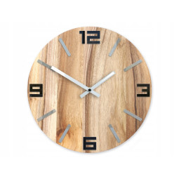 Ceasuri de perete din lemn, realizate manual cu atenție la fiecare detaliu - cu indicii de aluminiu gri cu luciu ridicat, decorate cu ace în culoare albă, ceea ce le conferă un caracter foarte elegant și stilat. Pentru protecție, ceasurile sunt impregnat cu ceară naturală de albine.