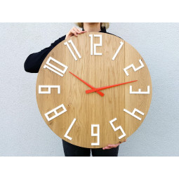 Ceasuri din lemn masive de 50 cm cu indicatoare albe pentru ore și ace portocalii. Ceasul are un cadran din stejar. Fabricat din material de clasa I, atent selecționat. Ceasul este impregnat cu ceară naturală de albine. Un accesoriu unic și original pentru interioare scandinave și moderne. Lemnul creează o atmosferă confortabilă și călduroasă în interior.