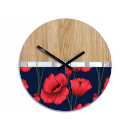 CEASURI DE PERETE din lemn cu motiv Maci sălbatici SILENT 33 CM