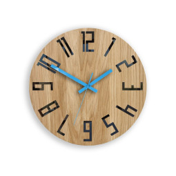 Ceas de perete din stejar SLIM - negru/albastru 33 cm