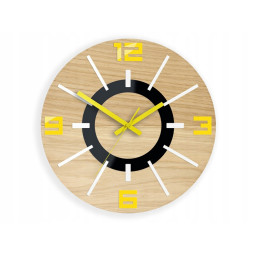 Ceas de perete din stejar, galben, Aladdin 3D, silențios
