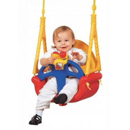Leagănul este fabricat din materiale de calitate, ceea ce îl face rezistent la intemperii. Construția este adaptată pentru a schimba funcțiile sale: leagăn cu siguranță, leagăn cu spătar, leagăn doar cu șezut. Chitanțele de prindere (aproximativ 130 cm) ale leagănului sunt ajustabile pe lungime și suspensiile speciale de pe laturile jucăriei protejează mâinile copiilor.