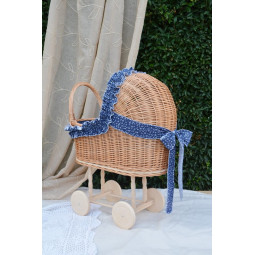 Un cărucior din răchită frumos și unic pentru păpuși.