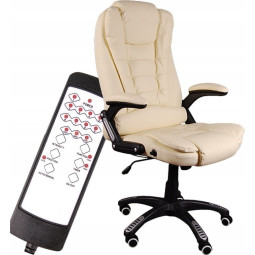 Scaun de birou cu funcție de masaj. Scaun unic conceput pentru un confort maxim în timpul orelor îndelungate de muncă. Datorită designului modern, scaunul va arăta grozav în orice cameră. Spătarul și șezutul bine profilate, echipate cu un perna lombară suplimentare, nu vor suprasolicita coloana noastră vertebrală în timpul orelor lungi de muncă. Scaunul are un mecanism de înclinare responsabil pentru așa-numita funcție de balansare. De asemenea, scaunul dispune de un spătar rabatabil pentru un confort sporit în timpul odihnei. Scaunul este complet rotativ și ajustabil pe înălțime. Funcția suplimentară de masaj efectuată prin puncte de vibrație plasate în șezut și spătar crește confortul utilizării.