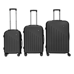 Valize în trei dimensiuni din plastic rezistent, dar ușor și practic în același timp. Roțile garantează o mișcare liberă în toate direcțiile. Mânerul telescopic se adaptează ușor pentru un utilizare confortabilă.