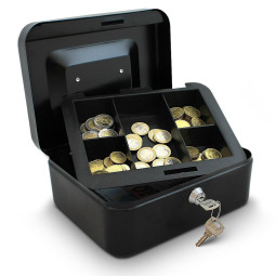 Complet nou, de calitate, cutie metalică pentru stocarea sau transportul monedelor, bancnotelor sau altor obiecte de valoare. Cutia metalică robustă și practică, echipată cu un separator de monede, este locul ideal pentru păstrarea bancnotelor și monedelor. În partea de jos există mult spațiu, de exemplu pentru bancnote, chitanțe, monede, bancnote și alte obiecte utile. Din motive de securitate, cutia este închisă cu un lacăt. Datorită mânerului ergonomic, transportul este o joacă de copii.