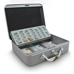 Această cutie practică este locul perfect pentru a sorta și număra bani și monede. Datorită sloturilor integrate din interior, aveți acces rapid la monede de diferite valori - fără a căuta.