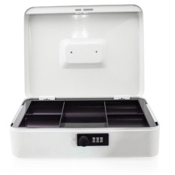 Cutie metalică complet nouă și de calitate pentru stocarea sau transportul monedelor, bancnotelor sau altor obiecte de valoare. O valiză metalică solidă și practică, echipată cu un separator de monede, este locul ideal pentru stocarea bancnotelor și monedelor. În partea de jos există mult spațiu, de exemplu pentru bancnote, chitanțe, monede, bancnote și alte obiecte utile. Pentru siguranță, cutia este închisă cu un lacăt cu combinație.