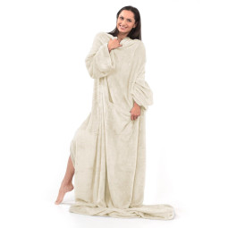 Pătură confortabilă LAZY, de culoare crem cu mâneci, 150x180