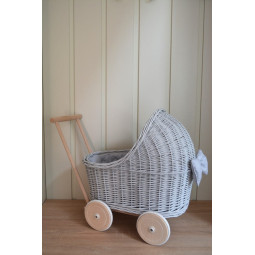 Un cărucior pentru păpuși frumos și unic. Un vis împlinit pentru orice tânără domnișoară. O jucărie frumoasă și practică. Mâner din lemn, plasat mai jos decât la un cărucior obișnuit, și o construcție stabilă vor permite copiilor mai mici să se joace în siguranță. Când creăm fiecare piesă, punem accent pe precizie și estetică, astfel încât fiecare client să fie mulțumit de efectul final. Căruciorul din ratan va fi cu siguranță un element unic în camera copiilor.