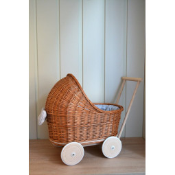 Un cărucior pentru păpuși frumos și unic. Un vis împlinit pentru fiecare tânără domnișoară. O jucărie frumoasă și practică. Mâner din lemn, amplasat mai jos decât la un cărucior obișnuit, și o construcție stabilă vor permite copiilor mai mici să se joace în siguranță. Atunci când creăm fiecare piesă, punem accent pe precizie și estetică, astfel încât fiecare client să fie mulțumit de efectul final. Cărăușul din ratan va fi cu siguranță un element unic în camera copiilor.