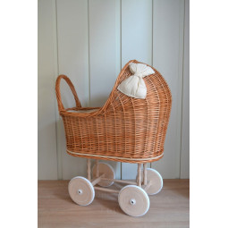 O cărucior frumos și unic pentru păpuși. Visul împlinit al fiecărei tinere domnișoare. O jucărie frumoasă și practică. Mâner din lemn, plasat mai jos decât la un cărucior obișnuit, și o structură stabilă permit copiilor mai mici să se joace în siguranță. La crearea fiecărui exemplar punem accent pe precizie și estetică, astfel încât fiecare client să fie mulțumit de efectul final. Căruciorul din rattan va fi cu siguranță un element unic în camera copiilor.