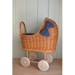 O cărucior frumos și unic pentru păpuși. Un vis împlinit pentru fiecare tânără domnișoară. O jucărie frumoasă și practică. Mâner din lemn, poziționat mai jos decât la un cărucior obișnuit, și o construcție stabilă, care va permite copiilor mai mici să se joace în siguranță. La realizarea fiecărui produs punem accent pe precizie și estetică, astfel încât fiecare client să fie mulțumit de efectul final. Căruciorul din nuiele va fi cu siguranță un element unic în camera copilului.