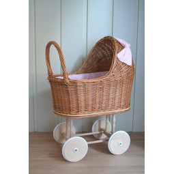 Cărucior pentru păpuși frumos și unic. Un vis împlinit pentru fiecare fetiță tânără. O jucărie frumoasă și practică. Mâner din lemn, amplasat mai jos decât la un cărucior obișnuit, și o construcție stabilă vor permite copiilor mai mici să se joace în siguranță. Atunci când creăm fiecare piesă, punem accent pe precizie și estetică, pentru ca fiecare client să fie mulțumit de efectul final. Căruciorul din răchită va fi cu siguranță un element unic în camera copiilor.