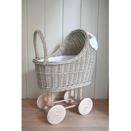Un cărucior pentru păpuși frumos și unic. Visul împlinit al fiecărei tinere domnișoare. O jucărie frumoasă și practică. Mânerele din lemn, așezate mai jos decât la un cărucior obișnuit, și construcția stabilă vor permite copiilor mai mici să se joace în siguranță. Atunci când creăm fiecare piesă, punem accent pe precizie și estetică, pentru ca fiecare client să fie mulțumit de efectul final. Căruciorul din nuiele va fi cu siguranță un element unic în camera copiilor.