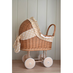 Un cărucior pentru păpuși frumos și robust din ratan, cu o fundație și un volan original. Visul împlinit al fiecărei tinere domnișoare.