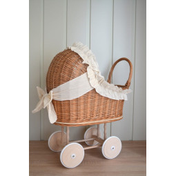 Un cărucior frumos și unic pentru păpuși. Un vis împlinit pentru fiecare tânără domnișoară. O jucărie frumoasă și practică. Mâner din lemn, situat mai jos decât la un cărucior obișnuit, și o construcție stabilă vor permite copiilor mai mici să se joace în siguranță. La crearea fiecărei piese punem accent pe precizie și estetică, pentru ca fiecare client să fie mulțumit de efectul final. Căruciorul din ratan va fi cu siguranță un element unic în camera copilului.