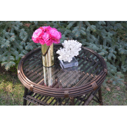 Masă din ratan solidă și elegantă, realizată manual din ratan natural. Datorită formei sale atemporale și clasice, masa se potrivește perfect în orice interior. Indispensabilă pentru aranjamentele de vară din grădină, terasă sau verandă. Ratanul de calitate și precizia execuției garantează că produsele noastre vă vor servi mulți ani.