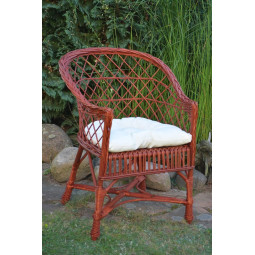Un fotoliu de grădină masivă și stilată, fabricată manual din răchită naturală.
