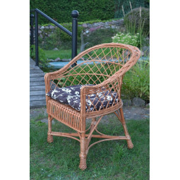 Scaun pentru grădină din ratan natural cu pernă maro cu model