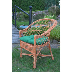Scaun de grădină din răchită naturală cu pernuță verde