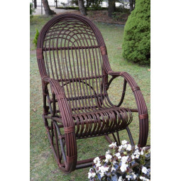 Scaunul balansoar foarte rezistent și durabil, realizat manual din rattan natural de culoare maro închis.