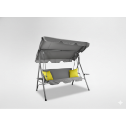 Banca este alcătuită dintr-o structură metalică, pe care este întins un material rezistent. Pernele detașabile, formată dintr-o pernă de șezut și un spătar, au cârlige pentru a împiedica alunecarea. Terminată cu o volan, va adăuga cu siguranță o notă de farmec oricărei grădini. În interiorul ambalajului veți găsi un manual de montaj împreună cu toate elementele interschimbabile ale setului. În plus, setul conține două perne și un suport pentru cești pe ambele laturi.