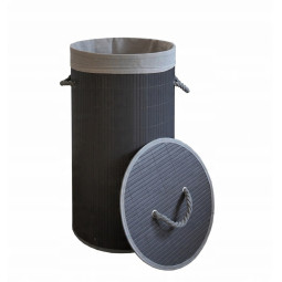 Coș rotund din bambus pentru rufe, de culoare gri, 60l