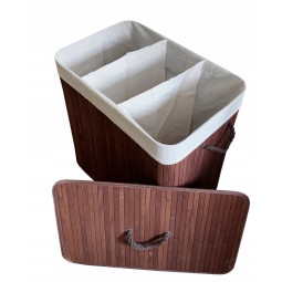 Introduceți puțin stil natural în baia dumneavoastră cu acest coș de rufe din bambus, practic. Este o soluție elegantă și funcțională, care vă va ajuta să mențineți ordinea și, în același timp, va adăuga căldură și estetică interiorului. Datorită celor trei compartimente separate, puteți sorta ușor rufele în funcție de culoare, tip de stofă sau membru al familiei. Coșul poate fi folosit și ca un recipient practic pentru jucării, prosoape sau alte textile de uz casnic.