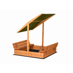 Cutia de nisip cu bănci și copertină, impermeabilizată, 120x120, din lemn FSC