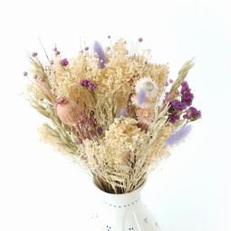 Romantică, delicată și feminină – buchetul Lara combină frumusețea naturală a florilor uscate în nuanțe de alb și mov cu accente fine de roz. Potrivit pentru ziua de naștere, inaugurare, nuntă sau pur și simplu – ca un cadou durabil care va aduce un zâmbet și va păstra amintiri. Buchetul este bogat alcătuit și se potrivește de minune și ca decorațiune pentru apartament, hotel sau restaurant. Cea mai mare avantaj este că nu necesită apă și rămâne frumos timp de luni de zile.