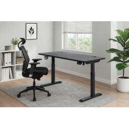Acest birou electric reglabil pe înălțime este ideal pentru birourile moderne. Înălțimea biroului este reglabilă continuu, iar controlul este simplu prin intermediul panoului LED. Blatul biroului, cu o grosime de 18 mm, oferă o suprafață solidă, iar construcția de suport din oțel asigură stabilitate. Datorită elementelor LED integrate, trecerilor de cablu, suportului pentru căști și construcției solide, este ideal pentru muncă sau joacă acasă.