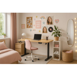 Această masă electrică ajustabilă pe înălțime este ideală pentru birourile moderne. Înălțimea mesei este ajustabilă continuu, iar controlul este simplu prin intermediul panoului LED. Blatul mesei cu o grosime de 18 mm oferă o suprafață solidă, iar construcția de suport din oțel asigură stabilitatea. Datorită elementelor LED încorporate, prizelor pentru cabluri cu flux, suportului pentru căști și construcției durabile, este ideală pentru muncă sau distracție acasă.