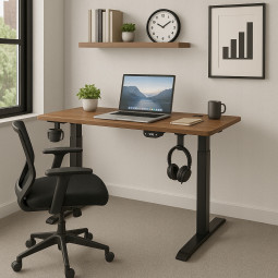 Această masă electrică ajustabilă pe înălțime este ideală pentru birourile moderne. Înălțimea mesei este reglabilă continuu, iar controlul este simplu prin intermediul panoului LED. Blatul de masă cu o grosime de 18 mm oferă o suprafață solidă, iar structura de suport din oțel asigură stabilitate. Datorită elementelor LED incorporate, guri de cablu, suportului pentru căști și construcției robuste, este ideală pentru muncă sau joacă acasă.