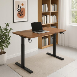 Această masă electrică reglabilă pe înălțime este ideală pentru birouri moderne. Înălțimea mesei este ajustabilă continuu, iar controlul este simplu prin intermediul unui panou LED. Blatul mesei cu o grosime de 18 mm oferă o suprafață solidă, iar construcția de suport din oțel asigură stabilitate. Datorită elementelor LED încorporate, pasaje pentru cabluri și suport pentru căști, este ideală pentru muncă sau joc acasă.