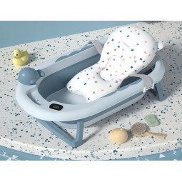 Cadă pliabilă premium cu perna, termometru și jucărie. Perfectă încă din primele zile ale bebelușului! Cada noastră combină confortul, siguranța și funcționalitatea, făcând băița o adevărată plăcere atât pentru bebeluș, cât și pentru părinte. Datorită designului compact, pliat și a suportului din silicon, cada se încadrează cu ușurință în orice baie și poate fi suspendată confortabil pe perete.