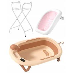 Cada baie pliabilă premium cu perne, termometru și jucărie. Perfectă încă din primele zile ale bebelușului! Cada noastră combină confortul, siguranța și funcționalitatea, făcând baia o adevărată plăcere atât pentru bebeluș, cât și pentru părinți. Datorită designului compact, designului pliat și suportului din silicon, cada se încadrează cu ușurință în orice baie și poate fi agățată confortabil pe perete.