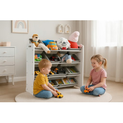 Menține ordinea în camera copilului cu organizatorul XXL pentru jucării. Oferă 12 recipiente spațioase, o construcție stabilă și un design modern, ideal pentru LEGO, plușuri și cărți.