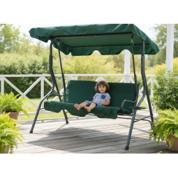 Leagănul de grădină într-o elegantă culoare verde închis este locul ideal pentru relaxare în zilele călduroase. Datorită designului modern și dotărilor practice, se potrivește perfect în orice grădină, pe terasă sau balcon.