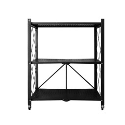 Raft metalic pliabil pe roți cu 3 rafturi. Suprafață elegantă cu găuri pe rafturi și țevi laterale care împiedică căderea obiectelor. Partea superioară a suportului se poate deschide.